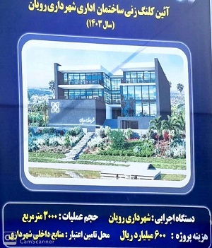 شهردار رویان در آئین کلنگ زنی عمارت شهرداری و دیگر پروژه های ایام الله دهه فجر به صورت تجمیعی در سخنانی با تبریک چهل و ششمین سالروز پیروزی انقلاب اسلامی و اعیاد شعبانیه اظهار کرد: با تصمیم اعضای شورای شهر در زمینی به مساحت حدود ۵ هزار متر اهدایی از سوی زنده یاد میر رسول رئیسی به شهرداری رویان در ادوار گذشته ، مقرر شد که عمارت شهرداری در این زمین احداث گردد.