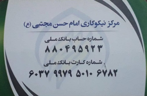 آدرس مرکز نیکوکاری و شماره حساب و کارت مرکز جهت ارسال نیات و کمکهای خیرخواهانه شما نیک‌اندیشان در تصاویر آمده است :